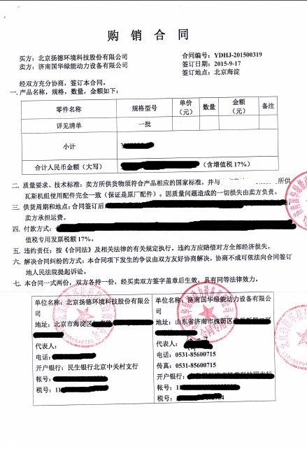 國華綠能公司與北京楊德環(huán)境達成配件供應協(xié)議