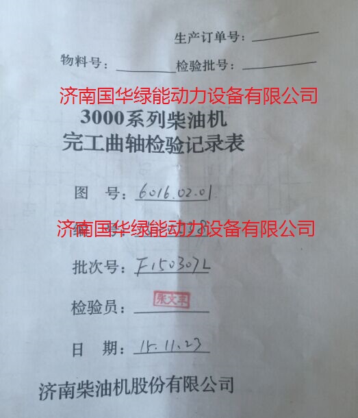 某燃?xì)獍l(fā)電用戶從我公司訂購(gòu)1臺(tái)16V190曲軸發(fā)貨。